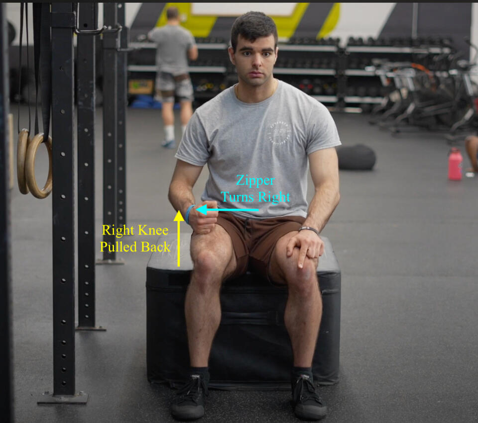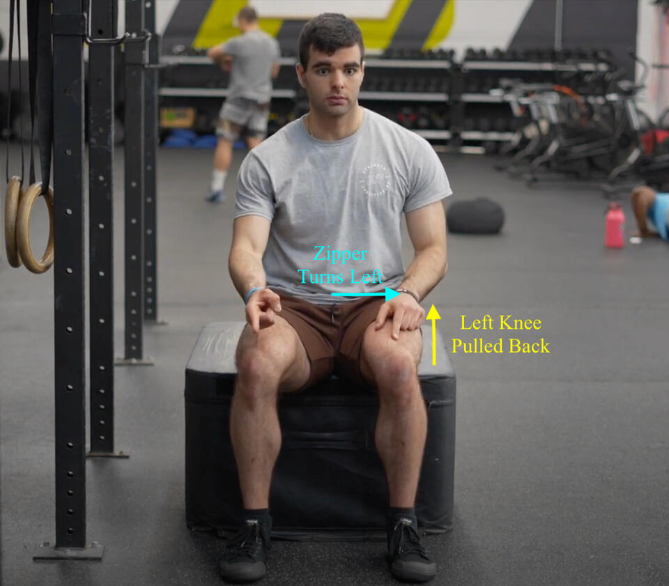 1) Seated Hip ShiftsThis one is a PFP special. In a seated position, try pulling one knee back behind the other. I If your knee is pressed against your desk, focus on pulling it away from the desk. For a visual cue, imagine turning the zipper of your pants toward the side of the body where you're pulling the knee backward. As you do this, the opposite knee will naturally shift forward. This creates rotation at the pelvis and engages your hips, keeping your body moving. Then, alternate by pulling the other knee backward, repeating this alternating sequence. Static sitting often leads to stiffness and tension, but performing this movement requires your body to release some of that tension to allow for hip rotation.Legend has it Coach Cesco performed seated hip shifts driving the entire 10 hours back home to NY from South Carolina and felt phenomenal (Cesco et al., 2022).