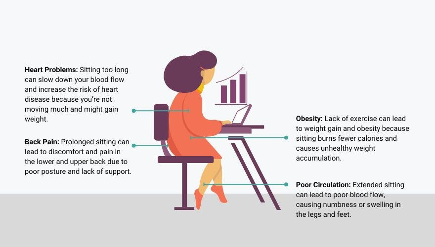 Taking a holistic view of the human body, prolonged sitting impacts more than just muscles. It requires minimal or no muscle activity, which can negatively affect blood lipid profiles and glucose metabolism, increasing the risk of chronic diseases such as cardiovascular disease (CVD) and Type II diabetes (T2DM) (Starkoff et al., 2015). A study by Pandey et al., 2016 found a higher risk of CVD in individuals who spend more than 10 hours per day in sedentary behaviors.Similarly, Bailey et al., 2019 confirmed this link and further adjusted for levels of physical activity. Different study, similar results - their findings revealed that the increased risk of diabetes remained unaffected by physical activity levels, while the increased risk of CVD was slightly reduced but still significant. Perhaps most striking is the evidence that even one hour of daily moderate to vigorous physical activity could not fully counteract the effects of prolonged inactivity on glucose metabolism and cholesterol if the majority of the day was spent sedentary (Starkoff et al., 2015).