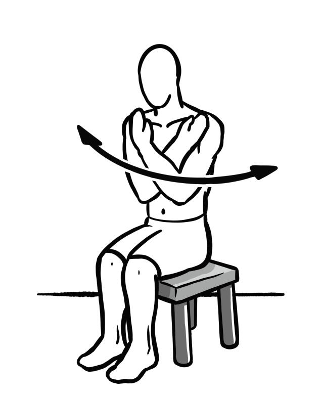 4) Seated T-spine Rotation - Get your upper back and neck moving by rotating your torso. For an added challenge, combine this with hip shifts for a two-for-one movement! As you rotate your upper body to one side, shift the corresponding knee backward for an integrated stretch and mobility boost.