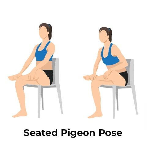 6) Seated Pigeon Stretch - Change up the position of your hips by crossing one ankle over the opposite knee to stretch the muscles in the backside of the hip. This can help alleviate tension in the hips and glutes.